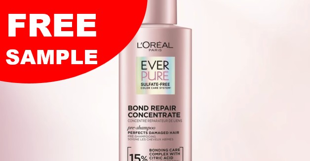 L’Oreal is offering free samples of its Everpure Bond Strengthening Pre-Shampoo Treatment in the mail. L’Oreal EverPure Bond Strengthening Pre-Shampoo Treatment is a salon-inspired formula designed to reinforce weak hair from the inside out. Infused with bond care technology and no harsh sulfates, this pre-shampoo treatment works deep within the hair fiber to strengthen and protect against damage before cleansing.